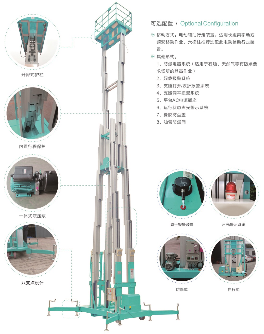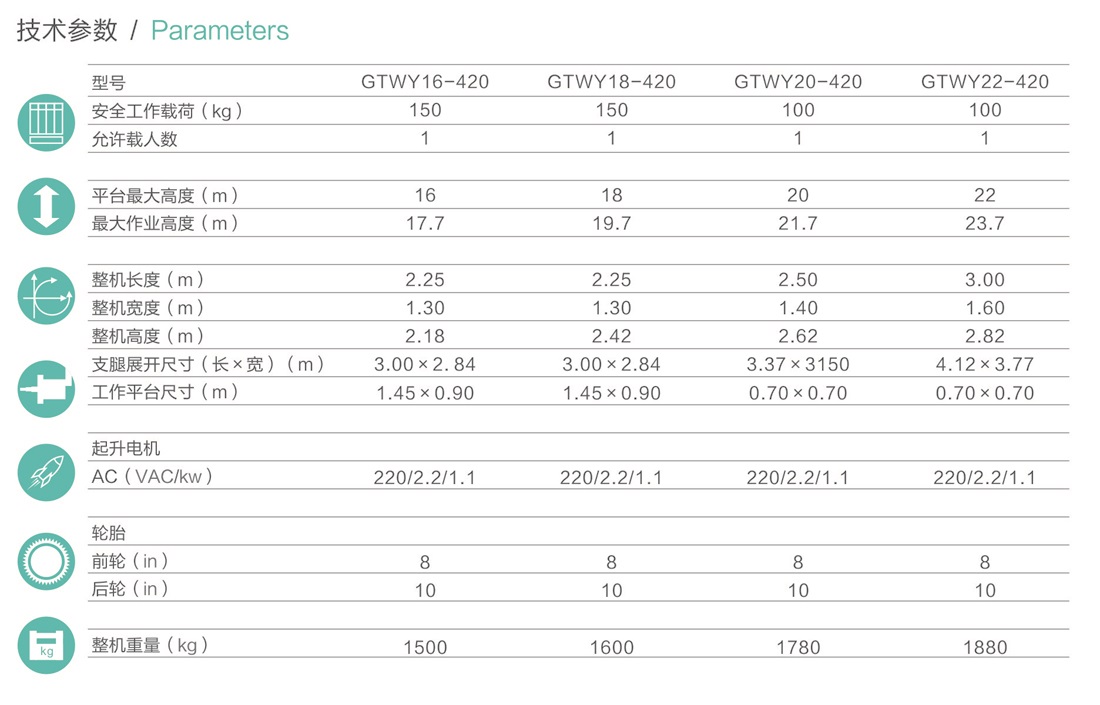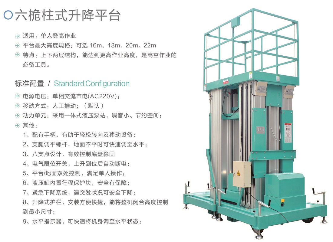 平臺(tái)最大高度規(guī)格:可選 16m、18m、20m、22m